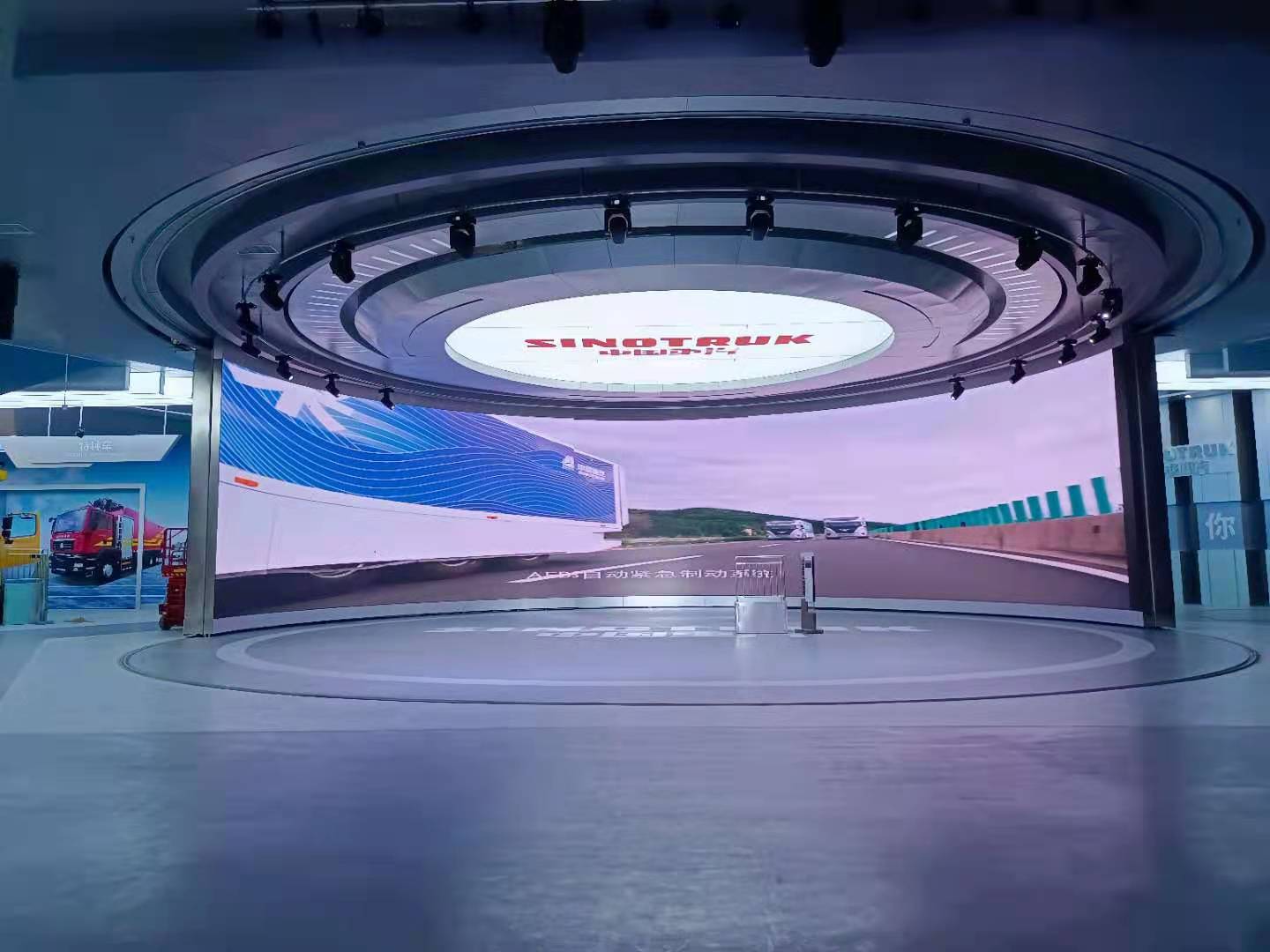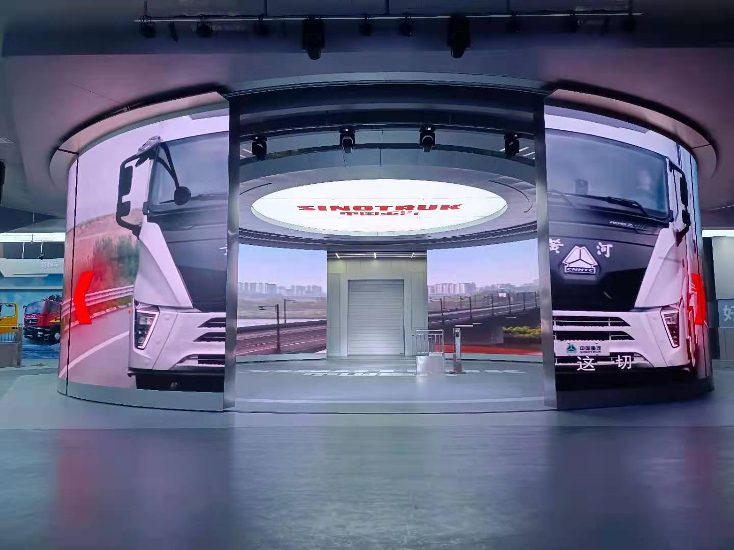 中國(guó)重汽集團(tuán)機(jī)械電動(dòng)開(kāi)合屏室內(nèi)P2.5全彩屏428.032平米