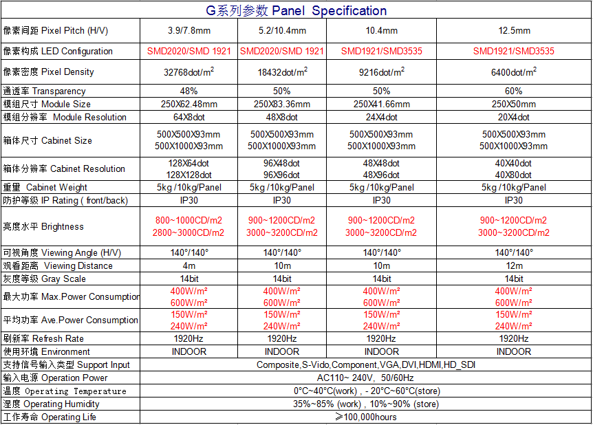 像素間距:3.9/7.8mm 5.2/10.4mm 10.4mm 12.5mm
