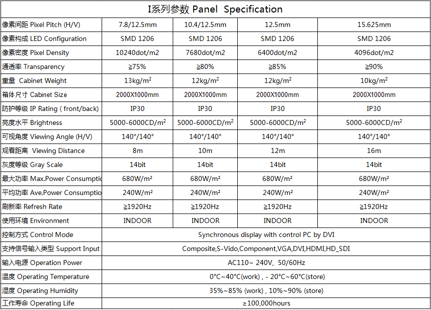 像素間距:7.8/12.5mm 10.4/12.5mm 12.5mm 15.625mm