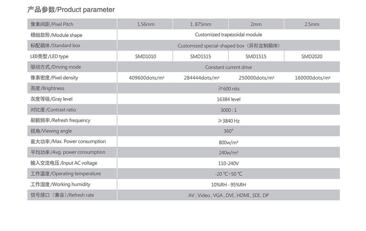 產(chǎn)品型號:P1.56、P1.875、P2、P2.5
